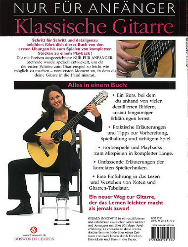 German language edition of the step-by-step approach to classical guitar. This includes: A look-and-learn course that used clear pictures instead of long explanations Practical advice and tips covering everything you needto know about setting up, playing and maintenance CD demonstration tracks, plus full-length accompaniments to play along with Develop correct playing techniques Learn to read and understand standard music notation andguitar tab