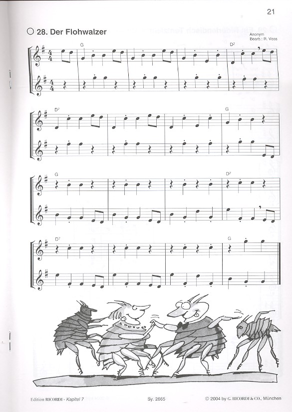 Leichte Duos Haenschen möchte ein Reiter sein gruenlands Drachen tanzen gerne armer Schmetterling ab ins Bett obwisana Menuett Für nanner auf dem Grünen rasen aennchen von der Mühle die Mühle Ding dong lummerlandlied (eine Insel mit zwei bergen) tanzlied mari mara maruschkaka der Mond ist aufgegangen in meinem Stübchen lauf mein Pferchen schlaf meine schöne (wiegende) chinatown Schnupftabak und in dem schneegebirge Menuett huayno ocarina lalelu es dunkelt schon in der Heide allegretto festtag die güldene sonne der flohwalzer ein Niederländisch tentlein Schnee und eis wohin ich schaue boatin up sandy mit meinem Mädel michel Lied kosakenlied Hans ohne sorgen Schlittschuh Walzer primavera (Frühling) trippel Walzer Walzer die Mädels vom immenhof une jeune fillette (ein junges Mädchen) le Büchern (contredanse) gavotte Arie shalom tanzlied (Menuett) wie schön dass du geboren bist La servol (contredanse) korobuschka (bauchladen) Heiratsantrag blue goose