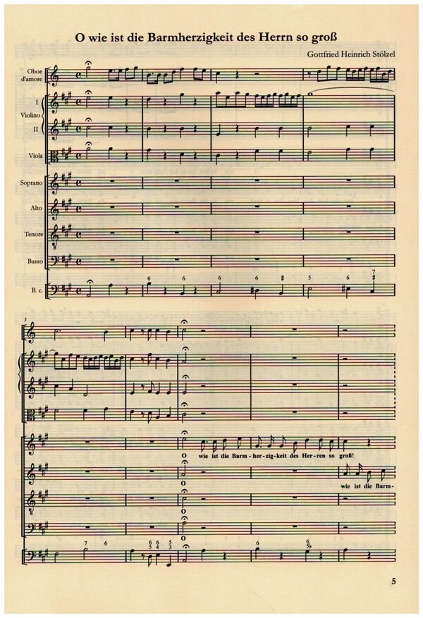 | Untertitel: | für Soli (STB), gem Chor, Oboe d'amore, 2 Violinen, Viola und Bc Partitur |