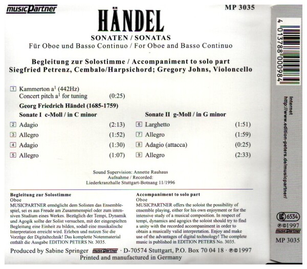 Produktinformationen "Oboensonaten c-Moll und g-Moll"