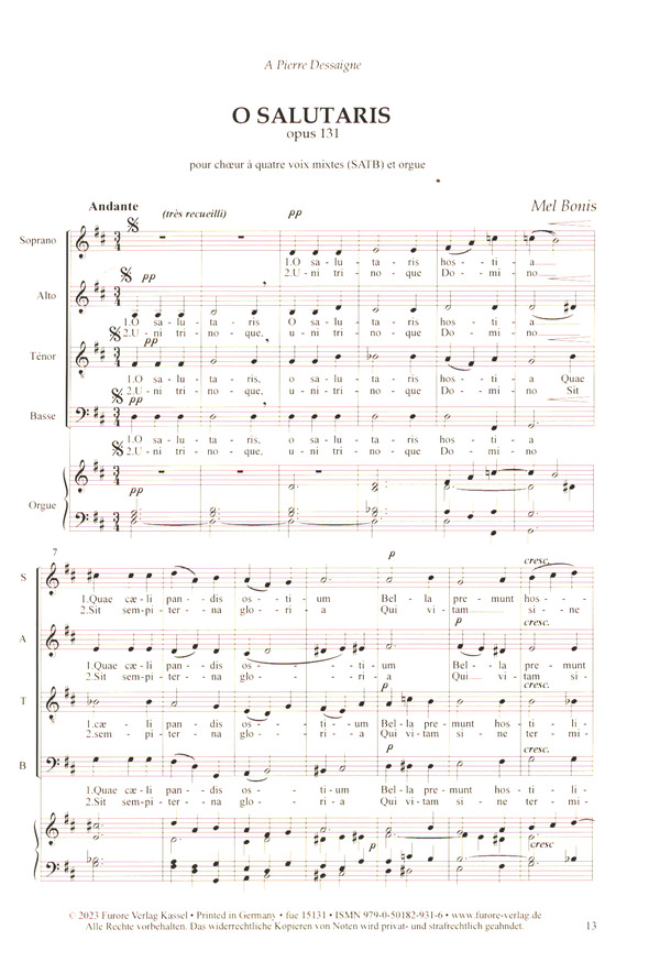Motetten Geistliche Vokalwerke in 5 Bänden Religous Vocal Works in 5 volumes O salutaris op.131 Adoro te op.150,1 Inviolata op.163 Ave verum op.166,1 Tantum ergo op.167 Twentieth Century T 37