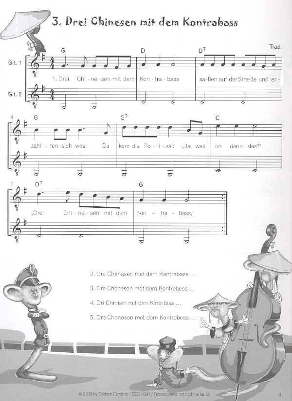 Braun, Jean-Peter, ed Wenn sich die Igel küssen Ich lieb den Frühling Drei Chinesen mit dem Kontrabaß Fünf kleine Fische Meine Biber haben Fieber Ich geh mit meiner Laterne Old Mac Donald Auf der Mauer auf der Lauer Has und Igel Grün grün grün Taler Taler Wet hat an der Uhr gedreht Ode an die Freude Mein Hut der hat drei Ecken Eisgekühlte Coca Cola Wenn du glücklich bist Lied der Schlümpfe Die Wissenschaft hat festgestellt Meine Oma fährt im Hühnerstall Motorrad
