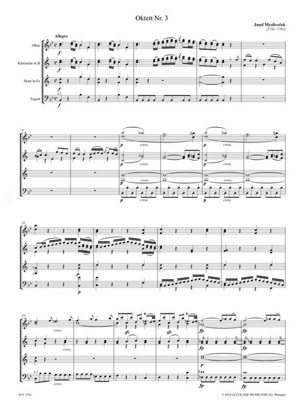| Untertitel: | für 2 Oboen, 2 Klarinetten, 2 Hörner und 2 Fagotte Partitur und Stimmen |