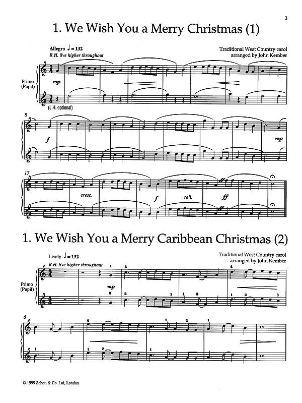We wish you a merry Christmas Silent Night The Holly and the Ivy We three Kings Away in a Manger God rest you merry gentlemen Il est ne Good king wenceslas Rocking Here we come a-wassailing Kember, John, ed