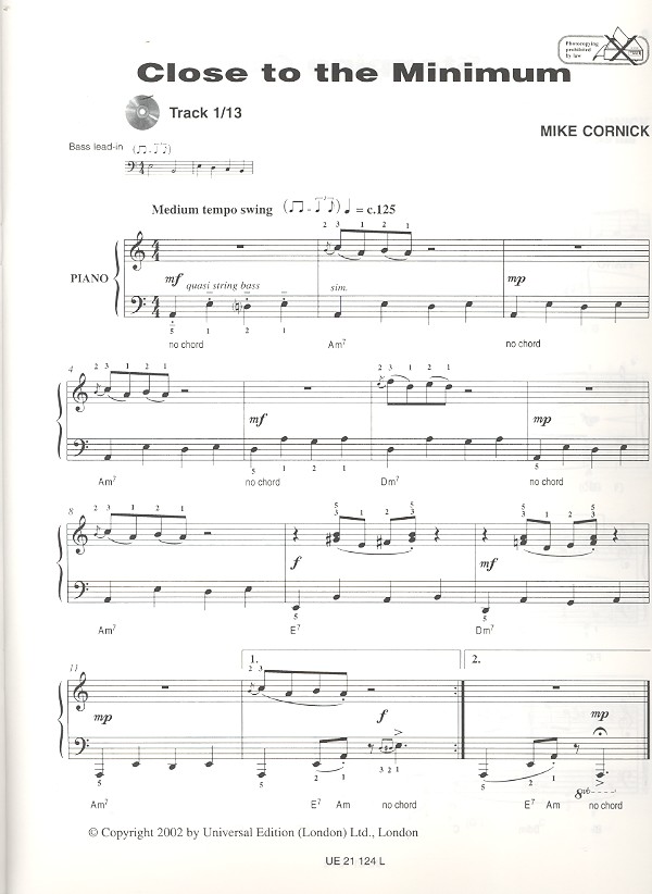 Play Piano in your own Jazz Trio Close to the Minimum Stepping out Fiver Hymn Waltz in F Blue Anchor Lane Blues in Three Sixty Sense Blues Dancing Fifths Baroque Groove Discrete Syncopations Modal Moves