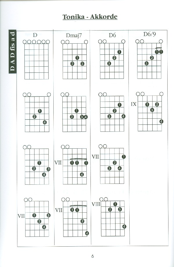 Open Tuning Chordbook mit Akkorden,