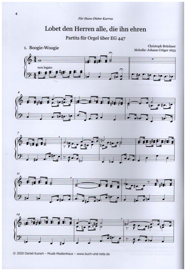 Boogie-Woogie Intermezzo Romanze Dialog c.f. im Pedal Interludio barocco Humoresque Take Five Quarters Take Five Eights Siciliano Hommage an Leonard Bernstein