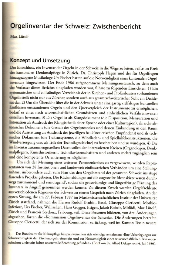 Schweizer Beiträge zur Musikforschung Band 8 Lütolf, Max, ed Luigi Ferdinando Tagliavini, L'inventario degli organi in Insvizzera: Considerazioni preliminari Max Lütolf: Orgelinventar der Schweiz: Zwischenbericht Georg Carlen: Der Orgelprospekt in der schweizerischen Kunstgeschichte: Ein Literaturbericht Werner Endner: Geschichte, Inventar und Restauration der Chororgel in St. Peter und Paul zu Sarnen Andreas Zwingli: Die Restaurierung der Psallierchor-Orgel in der Klosterkirche Fischingen TG Hans Gugger: Die Emmentaler Hausorgel Arno Caluori: Die Serassi-Orgel in der evangelischen Kirche von Brusio Francois Seydoux: Die Grosse Orgel zu St. Niklaus in Freiburg i. Ue. Geschichte und Problematik der Restauration Francois Seydoux: L'orgue Callinet de Villaz-St-Pierre Friedrich Jakob: Die Orgel in der römisch-katholischen Pfarrkirche St. Peterzell Urs Fischer: Die Orgel in der reformierten Kirche Eglisau Rudolf Bruhin: Die Orgel der römisch-katholischen Pfarrkirche St. Anton in Basel Bernhard Billeter: Die Orgel im Grossmünster Zürich