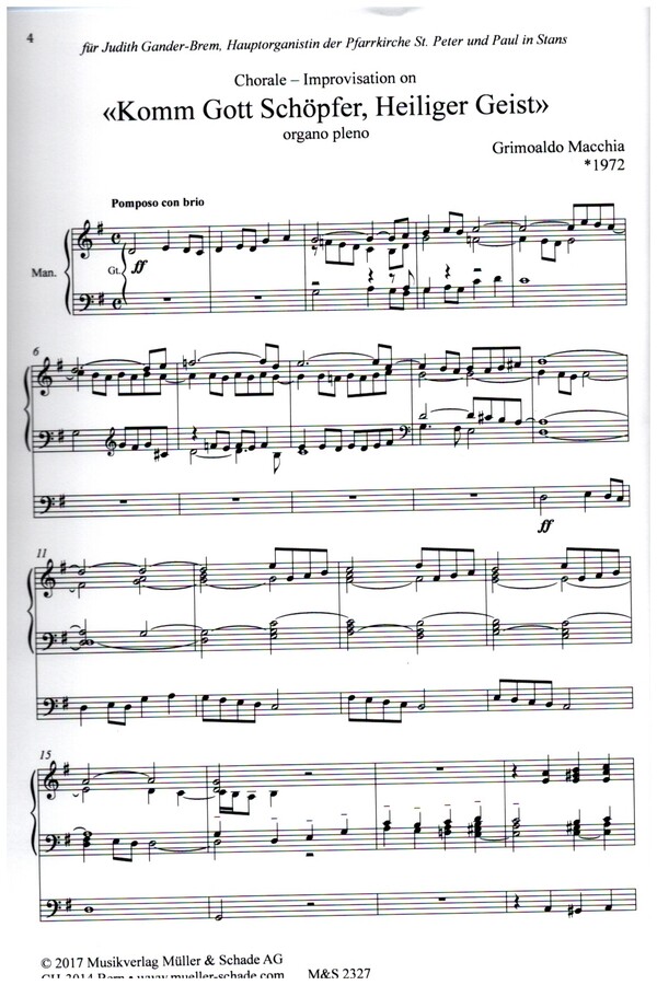 Chorale-Improvisation on 'Komm Gott Schöpfer, Heiliger Geist' Fantasia in f-Moll über 'Der Geist des Herrn' Toccata über 'Mein Auge schaut den Berg hinan' Virationen über Ave Maria zart'