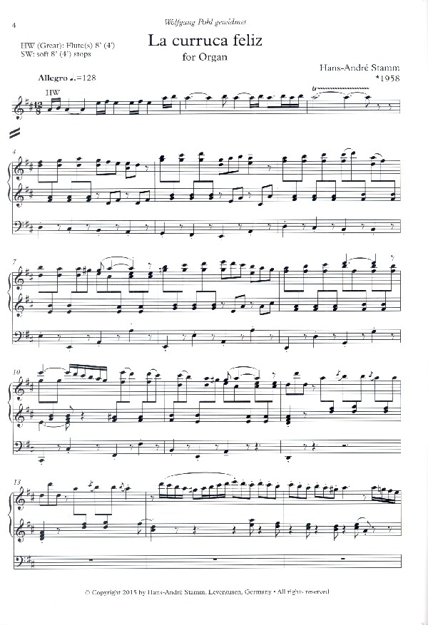 La Curruca Feliz Fantasia cilena March of Joy Postludium über 'Freu dich sehr, o meine Seele' Sunlit Morning Toccata niçoise Rondeau écossais Passio The Carnival of the Organ Stops