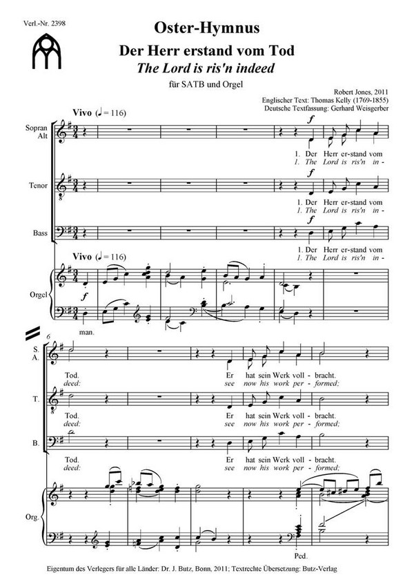 Kelly, Thomas, englishcer Text Weisgerber, Gerhard, deutscher Text Der Herr erstand vom Tod The Lord is ri'n indeed