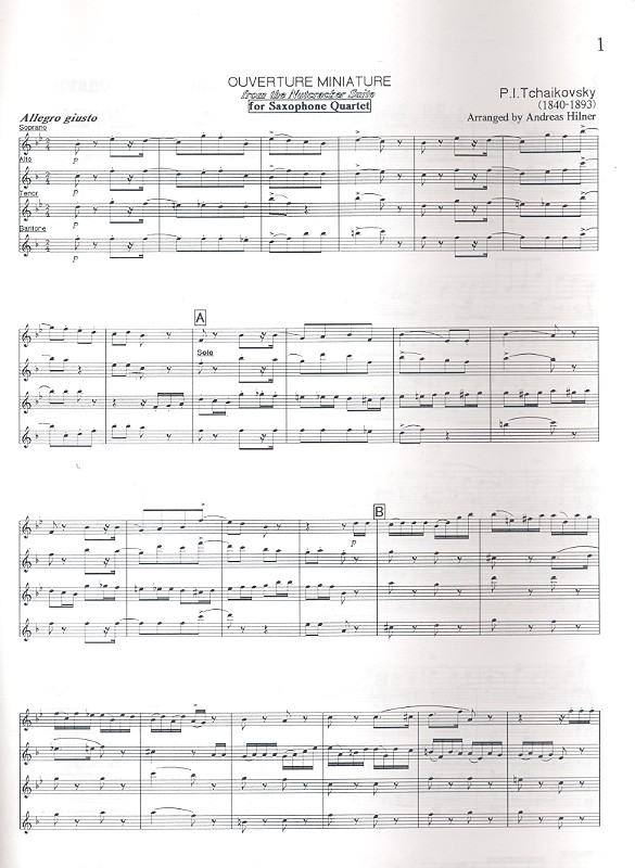 | Untertitel: | Nutcrakcer Suite for 4 saxophones (SATB) score and parts |
