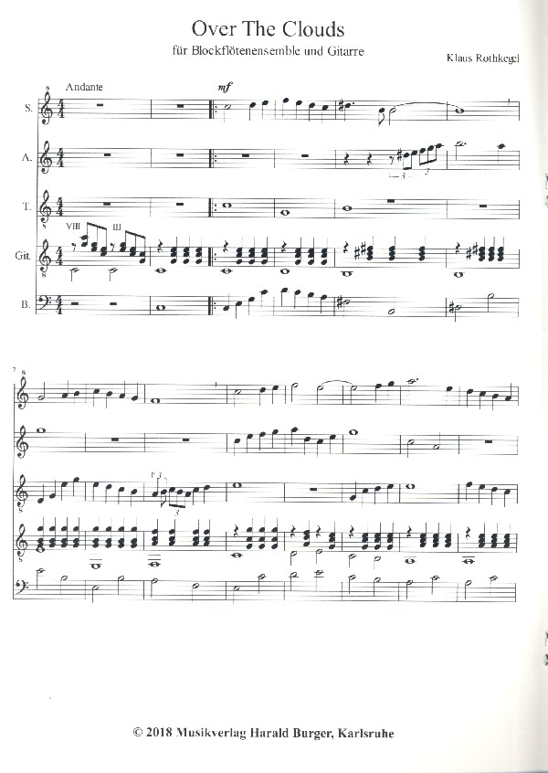 | Untertitel: | für 4 Blockflöten (SATB) (Ensemble) und Gitarre Partitur und Stimmen |