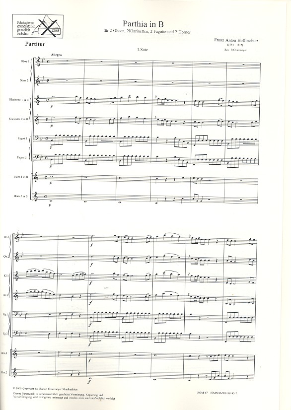 Parthia B-Dur für 2 Oboen, 2 Klarinetten,
