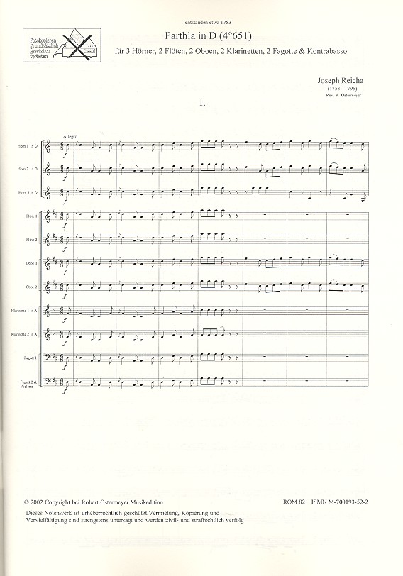 Parthia D-Dur für 2 Flöten, 2 Oboen,