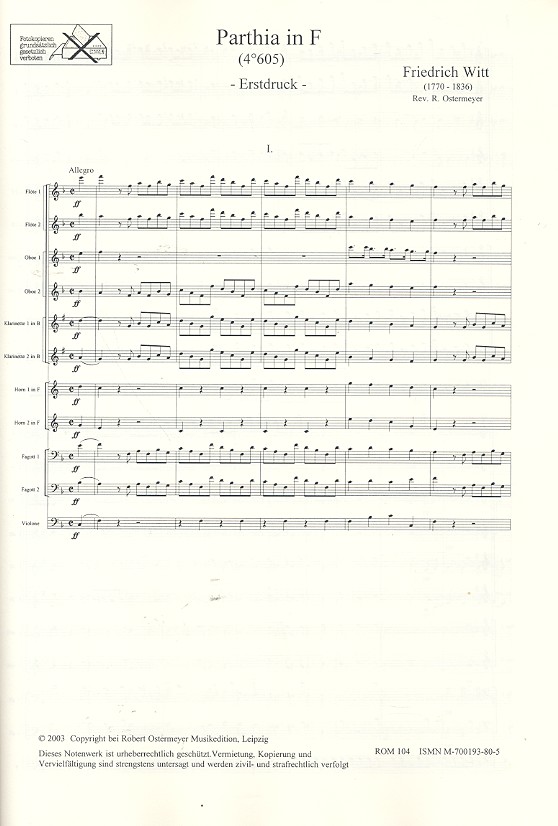 Parthia F-Dur Nr.605 für 2 Flöten, 2 Oboen,