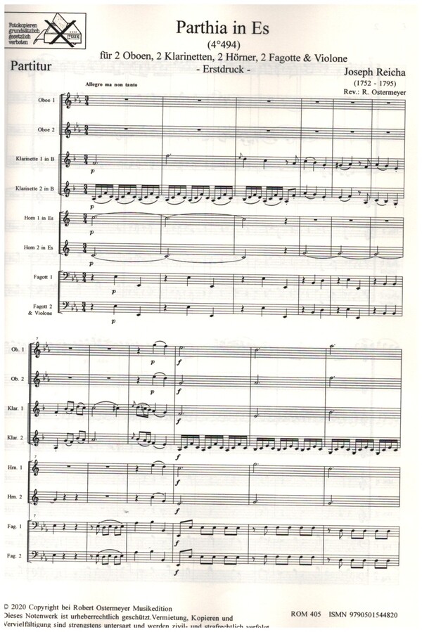 | Untertitel: | für 2 Oboen, 2 Klarinetten, 2 Hörner, 2 Fagotte und Violone Partitur und Stimmen |