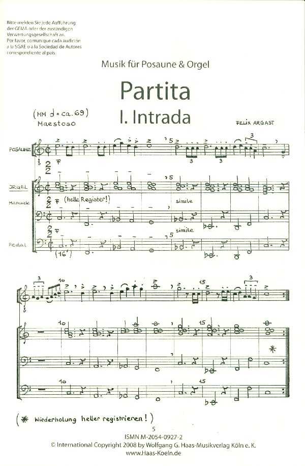Partita ArgWV4 für Posaune und Orgel