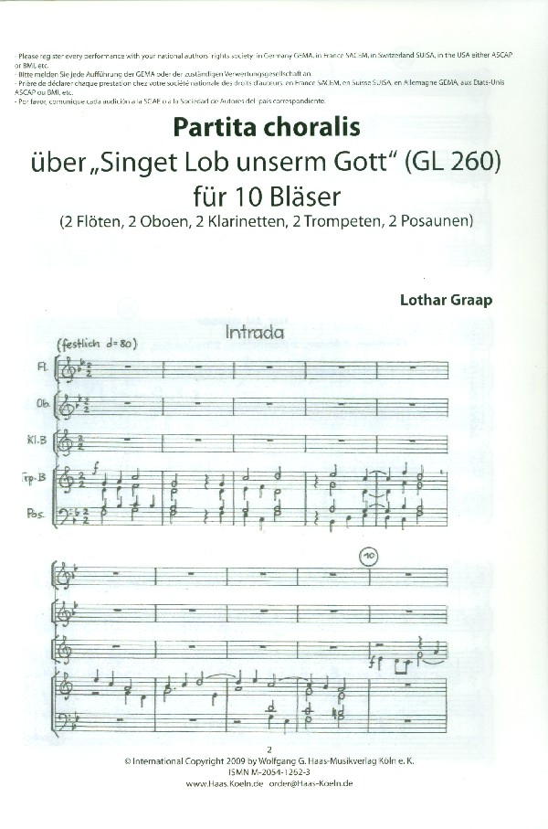 | Untertitel: | GWV624 für 10 Bläser Partitur und Stimmen |