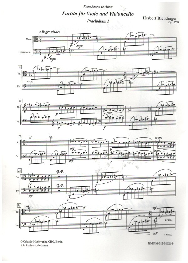 | Untertitel: | für Viola und Violoncello 2 Spielpartituren |