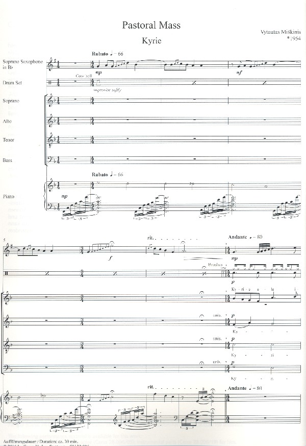 | Untertitel: | für gem Chor, Sopransaxophon, Klavier und Schlagzeug Partitur |