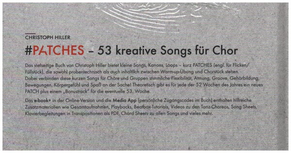 Chorleitung Warm-up 53 neue Kanons und Loop Songs mit Kreativideen, Klavier-Patterns und umfangreichem Online-Material Zerbrechen auch Sie sich zuweilen den Kopf über die Frage, welche neuen Warm¡-ups Sie mit Ihrem Chor machen möchten? Die neuen PATCHES (engl. für Flicken/Füllstück) sind kleine Songs, Kanons, Loops für Chöre und Gruppen, die sowohl probentechnisch als auch inhaltlich zwischen Warm-up-Übung und Chorstück stehen. Vor der eigentlichen Repertoireprobe können sie als kreativer Abschluss des Warm-ups gesungen werden, in besonderen Fällen auch das Warm-up komplett ersetzen. Sie bereiten sowohl die Stimme Ihrer Sängerinnen und Sänger als auch den gan¡zen Körper und Geist auf die Probe vor, verbinden dabei stimmliche Flexibili¡tät, Atmung, Groove, Gehörbildung, Bewegungen, Körpergefühl und Spaß an der Sache! Die PATCHES sind in verschiedene Schwierigkeits¡grade (easy, medium, high) eingeordnet und können aufgrund ihrer vielfältigen Styles bei unterschiedlichsten Gelegenheiten eingesetzt werden. Einige PATCHES eignen sich für bestimmte Anlässe wie Geburtstag und Weihnachten, andere als kleine Füllstücke für Konzerte. Theoretisch gibt es für jede Woche des Jahres ein neues PATCH plus Bonustrack für die eventuelle 53. Woche. Zu jedem Song gibt es im Buch eine einfache Klavierbegleitung mit Akkord¡symbolen, eine Infoseite mit methodischen Tipps und Tricks, Aufführungshinweise sowie Solmisations-¡ und Beatbox¡-Patterns. Abendlied Ans Meer Badezimmer Big Mama Celebrate Chocolate Cookie Come on, Baby Coming Closer Decision Deep In My Soul Dein Ding Denken hält jung Drowning in Your Love Echoes Fängt der Mond die Sterne Funky Dow Gerichteküche Geschenkte Welt Get the Windy Spirit GratulaTon Hans von Klein Happy Birthday Haus aus Sand Herbstregn Hey, was geht n Hidden Chord Holy Thought Konzertankündigung Mayhem of Five My Vanity Nakutakia siku njema Neuer Tach New Morning Niko-Laus On the Fly Poa kichizi kama ndizi Quiet Lake Rain Bears a River Ride Low Santé Schwetta Seven Thoughts Sommerhitze Spring Is On Strange Thing Sugar Machine Synchronized Tina liebt Marc Viele gute Zeiten Weltbürger Woanders lang ZSK-Gerät Bonustrack