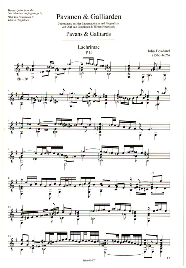 Sämtliche Lautenwerke im Urtext Band 2 Van Gonnissen, Olaf, arr. Hoppstock, Tilman, arr. In einer urtextorientierten Übertragung für Gitarre erscheint hier der zweite Band der kompletten PRIM-Lautenwerk-Edition von John Dowland. Das aufwendig produzierte Heft mit insgesamt 24 Stücken enthält alle Pavanen sowie einen Teil der rund 30 Galliarden. In diesen Werken zeigt sich die unglaubliche kompositorische Vielfalt des wohl bedeutendsten Lautenisten seiner Zeit. Mit ausführlichem Textteil sowie Fingersätzen der Bearbeiter Olaf Van Gonnissen und Tilman Hoppstock. - mit ausführlichem Vorwort in engl. + dt. - komplette Fingersätze