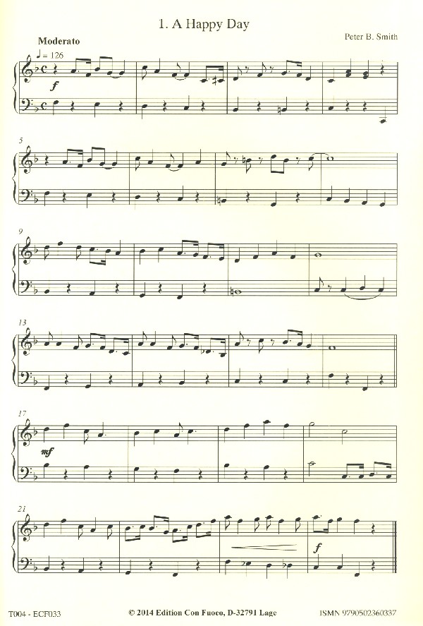 15 leichte Klavierstücke Swinging und romantisch A cheeky Tune A happy Day Gavotte for Nanny Mexican Peppers Minuet for Ma My March On the River bank Petit Pierre Raggy-Taggy-Time Romance The royal Visit Three and four Waggy Waltz Which Key Whistling Willy