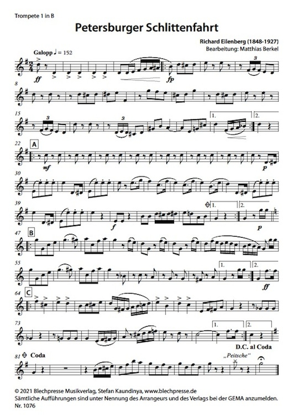 Den Namen des Komponisten kennen nur Wenige, aber die Melodie der Petersburger Schlittenfahrt ist weithin bekannt. Der Galopp, ursprünglich für Klavier, bekannt aber vor allem in der Orchesterfassung, behält auch mit Blechbläsern seine Spritzigkeit - wenn man ihn entsprechend schnell spielen kann. Aus dem Repertoire des Blechbläserquintetts BRASSerie.