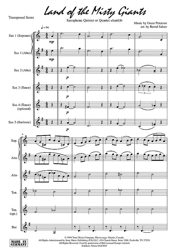 | Untertitel: | for saxophone quintet or quartet (S/AAT(T)B) score and parts |