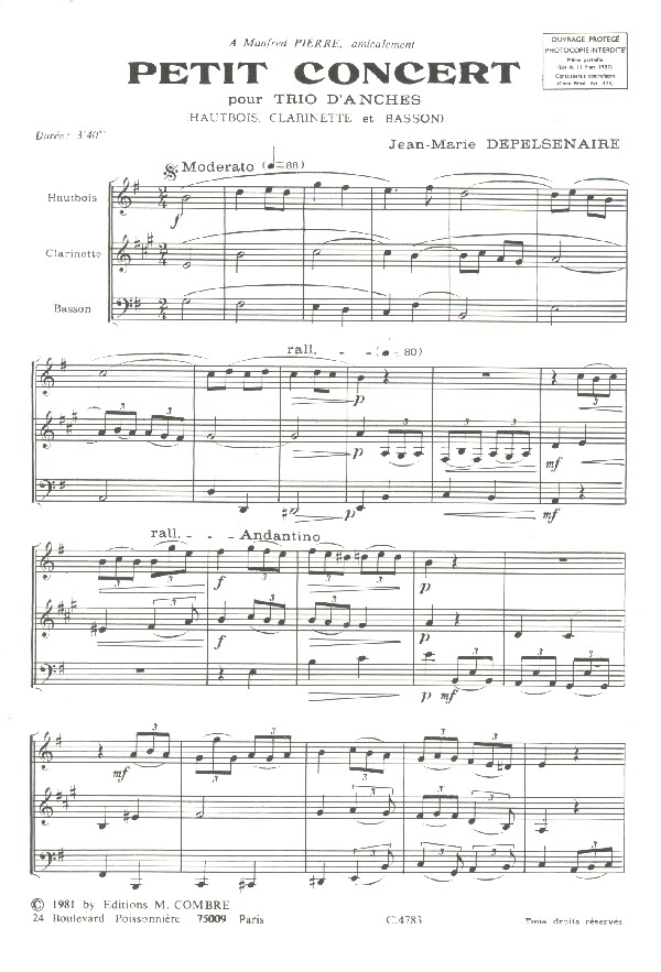 Produktinformationen "Petit concert pour hautbois, clarinette"