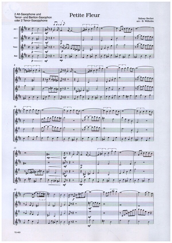 | Untertitel: | für 4 Saxophone (AATT/Bar) Partitur und Stimmen |
