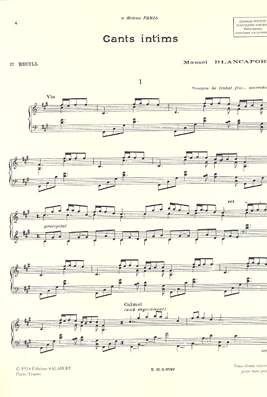 Chants intims 1er recueil Chants intims 2éme recueil (1919) Chemins (Camins) Le Parc d'Attractions (El Parc d'Atraccions) Pastoral en sol