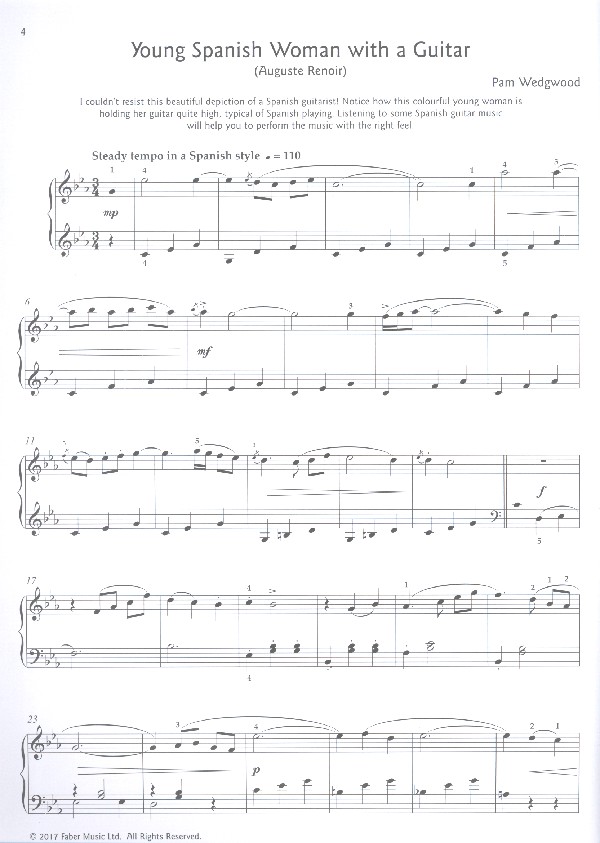 14 original Pieces inspried by great Works of Art with Pictures Young spanish Woman with a Guitar The Dance Class Starry Night Nocturne, Blue and Silver - Chelsea Fatata te Miti Paris Street in rainy Weather Where's the Antelope Woman with a Parasol Approach to Venice Bathers at Asnières Las Meninas Large Wave The Swing En route pour la pêche