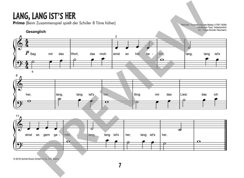 Heumann, Hans-Günter, arr. Die richtigen Stücke für das erste Konzert Bravo Bravissimo! (H.-G. Heumann) Lang, lang ist's her (T. H. Bailey Volkstümlich, Arr.) Lustiger Clown Sinfonie Mit dem Paukenschlag (J. Haydn, Arr.) Kaiser-Walzer (J. Strauß, Sohn, Arr.) Au clair de la lune (J.-B. Lully Französisches Kinderlied, Arr.) Rock Kids in Concert (H.-G. Heumann) Der Kuckuck und der Esel (K. F. Zelter Hoffmann von Fallersleben, Arr.) Spazierender Bass Walking Bass (H.-G. Heumann) Alouette (Französisch-kanadisches Kinderlied) Presto (D. G. Türk) Imitation und Umkehrung aus Mikrokosmos 1, Klavierstück Nr.23 (B. Bartók) Spanischer Tanz (H.-G. Heumann) Melodie Nr.8 aus L'ABC du Piano (F. Le Couppey) Melodie Nr.10 aus L'ABC du Piano (F. Le Couppey) Zwiegespräch aus Die erste Zeit am Klavier, Klavierstück Nr.4 (B. Bartók) Kleine melodische Etüde op.187,15 (C. Gurlitt) Kleine melodische Etüde op.187,16 (C. Gurlitt) Kleine melodische Etüde op.187,17 (C. Gurlitt) Thema mit Variationen (J. N. Hummel) Alter deutscher Tanz (M. Praetorius) Kids Will Rock You (H.-G. Heumann) Specht im Walde (G. Kretschmer) Harlekin-Walzer (H.-G. Heumann) Tag des Klaviers (H.-G. Heumann) Minuetto aus 24 Short ans Easy Pieces Nr.2 (A. Reinagle) Allegro aus 24 Short ans Easy Pieces Nr.4 (A. Reinagle) Allegretto mit Variation (A. E. Müller)