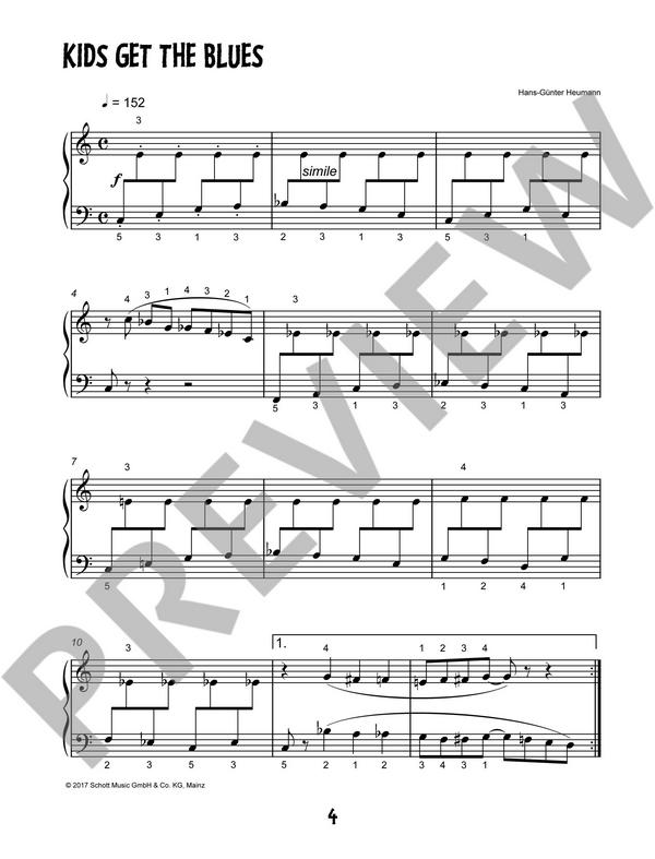 Heumann, Hans-Günter, arr. zur Klavierschule Piano Kids Band 3 Die richtigen Stücke für das erste Konzert H.-G. Heumann: Kids Get the Blues W. A. Mozart: Das klinget so herrlich aus der Oper 'Die Zauberflöte' C. Reinecke: Wasserfahrt op.107,9 H.-G. Heumann: Das Zauberklavier B. Bartók: Menuett aus 'Die erste Zeit am Klavier', Klavierstück Nr.11 H.-G. Heumann: Piano Kids on Tour Flohwalzer S. Joplin: The Easy Winners Matilda P. I. Tschaikowsky: Die neue Puppe aus 'Kinderalbum' op.39,9 House of the Rising Sun Amazing Grace H.-G. Heumann: Big Rock D. Kabalewski: Galopp op.39,18 A. Diabelli: Alla turca op.149,26 H. Purcell: Rondo aus der 'Abdelazer Suite' Z570 G. Verdi: La donna è mobile aus der Oper 'Rigoletto' U. Jürgens/ S. Rabe: Vielen Dank für die Blumen aus dem Film 'Tom und Jerry' J. Fucík: Einzug der Gladiatoren D. G. Steibelt: Adagio G. Horváth: Der Gnomentanz op.20,4 B. Bartók: Spiel Morning Has Broken C. Gurlitt: Vivace op.179,32 E. Humperdinck: Brüderchen, komm tanz mit mir aus der Oper 'Hänsel und Gretel' A. Gretchaninoff: Nach dem Balle op.98,13 H.-G. Heumann: Wellen D. G. Türk: Minuetto aus '60 Handstücke für angehende Klavierspieler' F. Couperin: Les coucous bénévoles Die gutmütigen Kuckucke C. Petzold: Menuett G-Dur BWV Anh.114