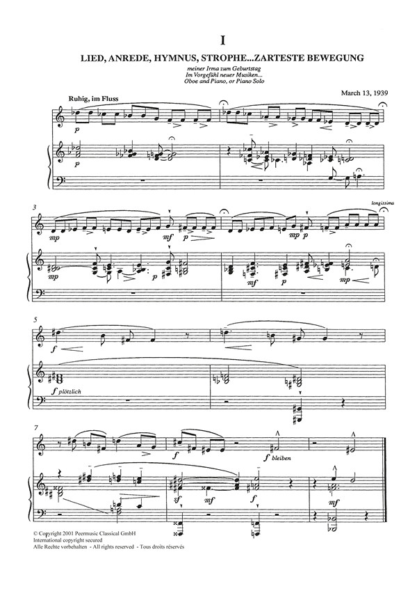 Lied, Anrede, Hymnus 1 Zemach Suite 2 1. Song 2. Piece of Embittered Music 3. Fuge a 3 (No.1) 4. Fuge a 3 (No.2) 5. Jubilation 6. Complaint 7. Dance in Form of a Chaconne Two pieces for piano 23 1. Pastorale 2. Con fuoco The good spirit of a right cause 31
