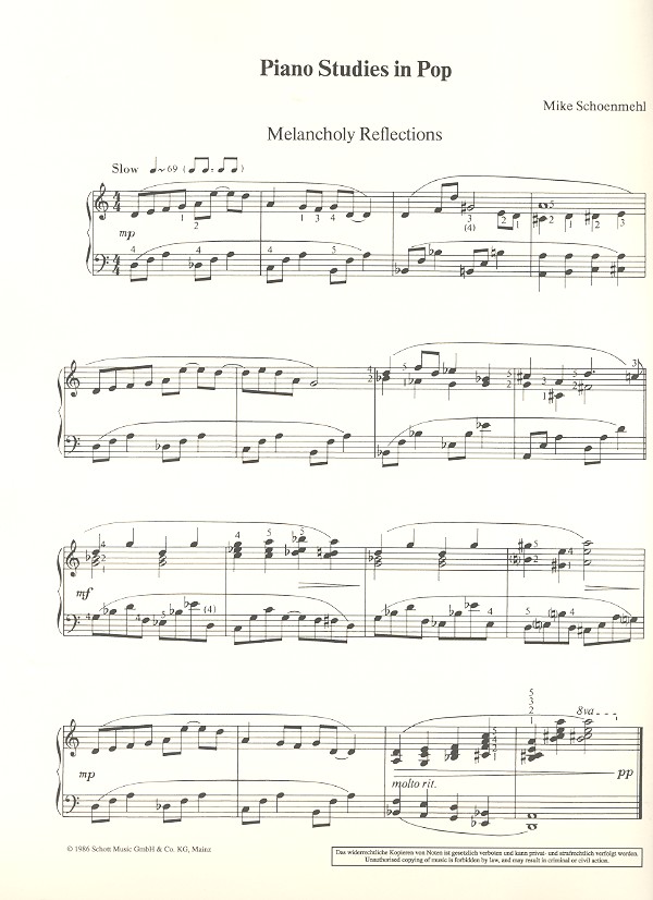 17 rhythmische, melodische, harmonische Jazz- und Popstücke Melancholy Reflections Sad Girl Soundsheets Train-journey Chicken Talk Cyclone Go Man, go Gypsy-tune Waltzing Classical Pop-tune Jazz-Waltz Disco-Visit Happy Days Blues Study in Rhythm Caribbean Adventure Marion's Walk