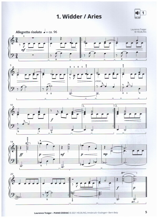 Der einzigartige Klavierzyklus nach den Tierkreiszeichen vermittelt einen musikalischen Eindruck des Sternkreises und ist sowohl für Klavierschüler/innen und engagierte Amateure als auch für Konzertpianist/innen geeignet, die nach neuer, aber zugleich melodischer Musik für ihr Repertoire suchen. Angaben zu Fingersatz, Pedalisierung, Dynamik, Artikulation, Tempo und Charakter erleichtern das Einstudieren. Metaphorische Texte und speziell zu diesen Stücken entstandene Bilder bilden zusammen mit der Musik ein künstlerisches Ganzes und sorgen für die entsprechende Einstimmung. Die professionell produzierten Einspielungen aller 12 Stücke dienen sowohl der klingenden Motivation als auch der Ergebniskontrolle. Sie stehen Ihnen über die kostenlose HELBLING Media App zur Verfügung. Zugangscode und Gebrauchsanweisung zur App finden Sie im Heft.