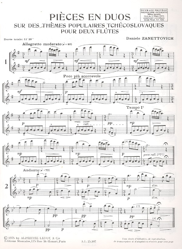 Pièces en duos sur des thèmes populaires Tchécoslovaques