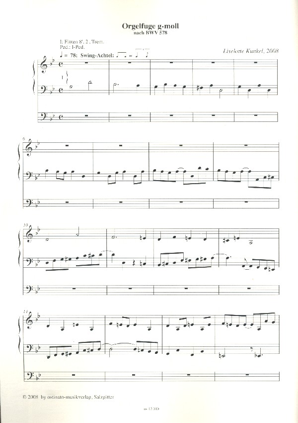 Fünf jazzige Orgelstücke nach Musik von J.S.Bach Orgelfuge g-Moll Wachet auf ruft uns die Stimme Badinerie Ach wie flüchtig ach wie nichtig Changes of Air