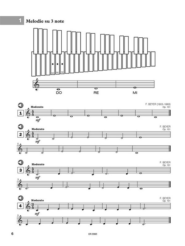 100 facili Melodie da 3 a 8 Note die Autori classici Basi & Parte per l'Acompagnamento al Pianoforte incluse The volumes of the Play Happy series contain 100 pieces from the classical repertoire arranged for beginners at their first steps in playing an instrument. These editions include: a part with piano accompaniments, the backing tracks both in download (mp3 files) and on the attached CD (audio files).