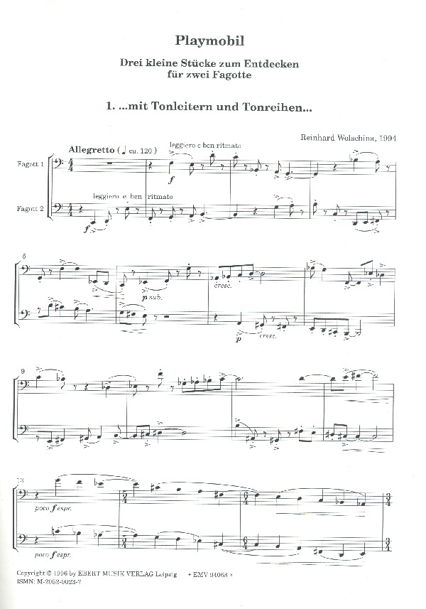 | Untertitel: | für 2 Fagotte Spielpartitur |