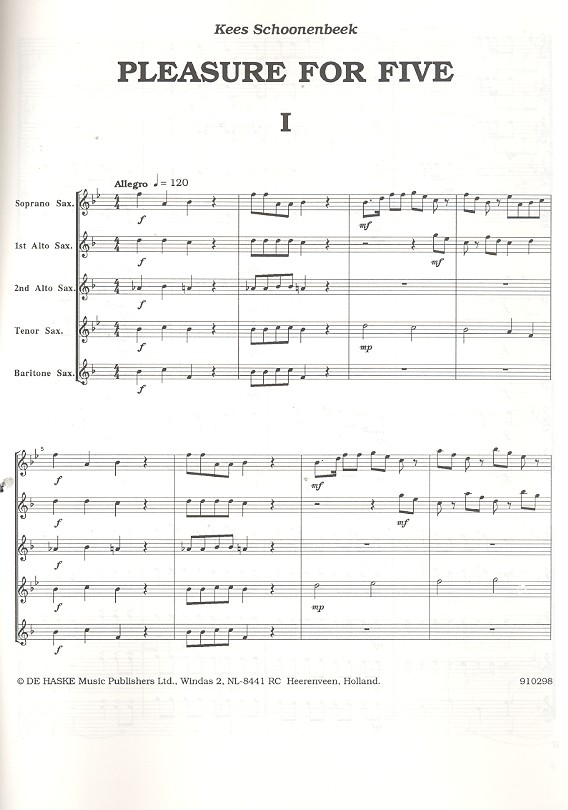 | Untertitel: | für 5 Saxophone (SAATBar) Partitur und Stimmen |