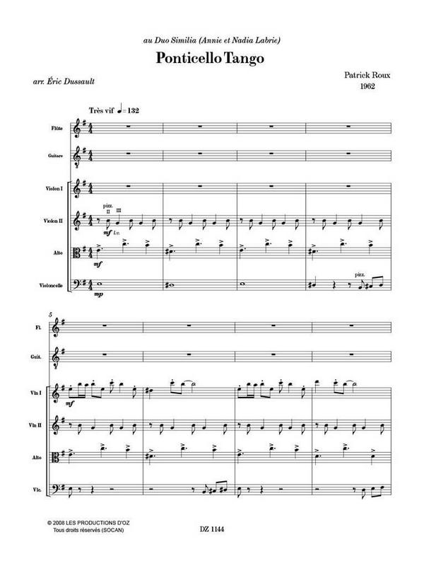 Ponticello Tango pour flûte, guitare,