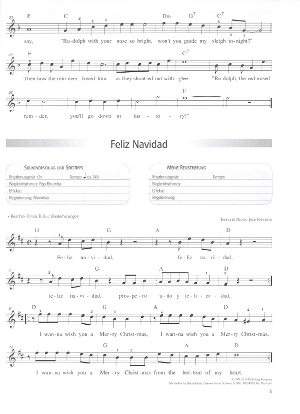 Keyboard Klangwelt Boarder, Steve, Bearb. Christmas time Deck the ahll Do they know it's Christmas Feliz Navidad In dulci jubilo Jingle bells Last Christmas Mary's boy child Lonely this Christmas Mistletoe and wine Rudolph the red-nosed reindeer Santa Claus is coming to town Thank god it's Christmas We wish you a merry Christmas