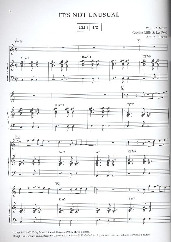 Desafinado Downtown Griechischer Wein He's a Pirate I'll never fall in Love again It never rains in Southern California It's not unusual I've had the Time of my Life Oh, Lady be Good Salut d'amour So What's New Thank You for the Music This World today is a Mess Top of the World Up up and Away When I'm Sixty Four