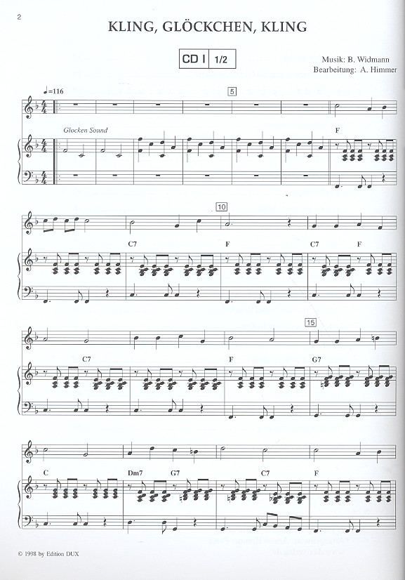 Alle Jahre wieder Am Weihnachtsbaum die Lichter brennen Feliz Navidad Have Yourself a Merry Little Christmas Ihr Kinderlein kommet Jingle Bells Joy to the World Kling Glöckchen kling Last Christmas Leise rieselt der Schnee Let it Snow, Let it Snow... Mary's Boy Child O du fröhliche O Tannenbaum Petersburger Schlittenfahrt Rudolph the Red-Nosed Reindeer Santa Claus is Comin' to Town Sleigh Ride Stille Nacht Süßer die Glocken nie klingen The Christmas Song The First Noel The Little Drummer Boy Winter Wonderland