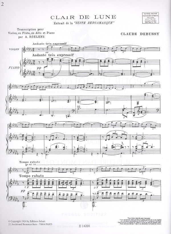 Clair de lune Rêverie Beau soir Il pleur dans mon coeur Ronchini, F., Bearb.