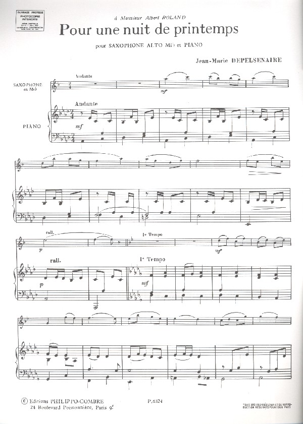 | Untertitel: | saxophone alto et piano |